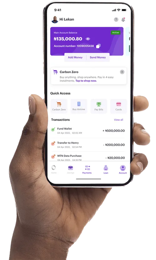 Learn MoreApply 24/7 and receive funds in your Carbon account instantly. Unlock higher loan amounts and lower interest rates by repaying loans on time.